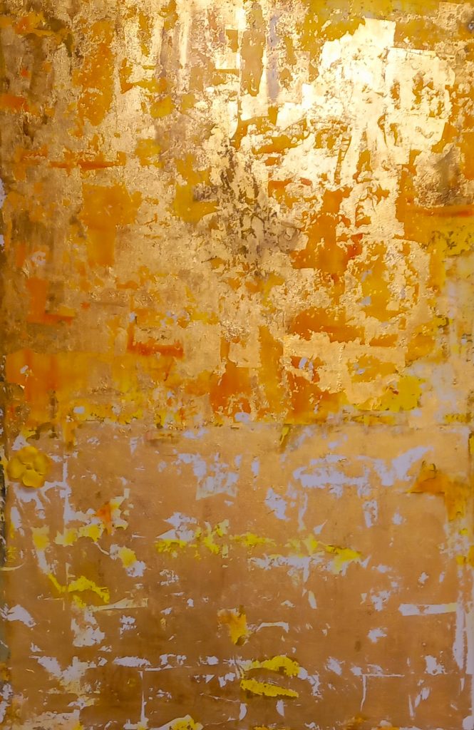 Brush Stokes Of Gold x 2^ Watercolors /gold leaf on canvas ^ 46 x 61cm
