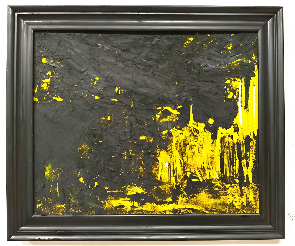 A Hymn in Black & Yellow ^ Textured In Oils On Board & Framed ^ 58 x 68 cm